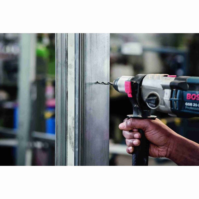 A Broca para Metal de aço rápido HSS-PointTeQ proporciona alta velocidade de perfuração devido ao desenho da sua ponta com tecnologia Bosch. Sua ponta centralizadora (Split Point) dispensa pré-furo ou punção inicial permitindo início rápido e fácil de perfuração evitando desvios no material. Com execução de perfurações rápidas a Broca HSS-PointTeQ gera menos calor e consequentemente menos desgaste, o que traz alto rendimento e maior número de perfurações até o fim de sua vida útil em comparação aos concorrentes. A Broca possui um corpo com alta elasticidade que diminui o risco de quebra, além de possuir óxido negro em sua espiral facilitando uma saída rápida dos cavacos. Com tecnologia exclusiva Bosch a Broca HSS-PointTeQ é fabricada com corpo forjado e ponta usinada proporcionando alto rendimento de perfuração até o fim de sua vida útil, mas com um custo acessível ao consumidor. Esta broca é adequada para perfuração em metais ferrosos e não ferrosos, ligas de aço, chapas de aço, tubos de aço, ferro fundido, aço puro, aço fundido, bronze, latão, PVC, plásticos e poliamida e indicada para utilização em Furadeiras, Parafusadeiras, Furadeiras de Coluna e Furadeiras de Bancada. A Broca para Metal HSS-PointTeQ possui portfólio completo com medidas em milímetros e polegadas variando de 1,0mm até 20,0mm e de 1/16" até 1/2". Possui encaixe cilíndrico no mesmo diâmetro da broca e entre as medidas 10,5mm e 20,0mm possui encaixe/haste reduzida permitindo utilização em furadeiras e parafusadeiras com mandril de até 13,0mm. É fabricada conforme a norma DIN 338, é do tipo N (ângulo da espiral) e possui a ponta em 135 graus.