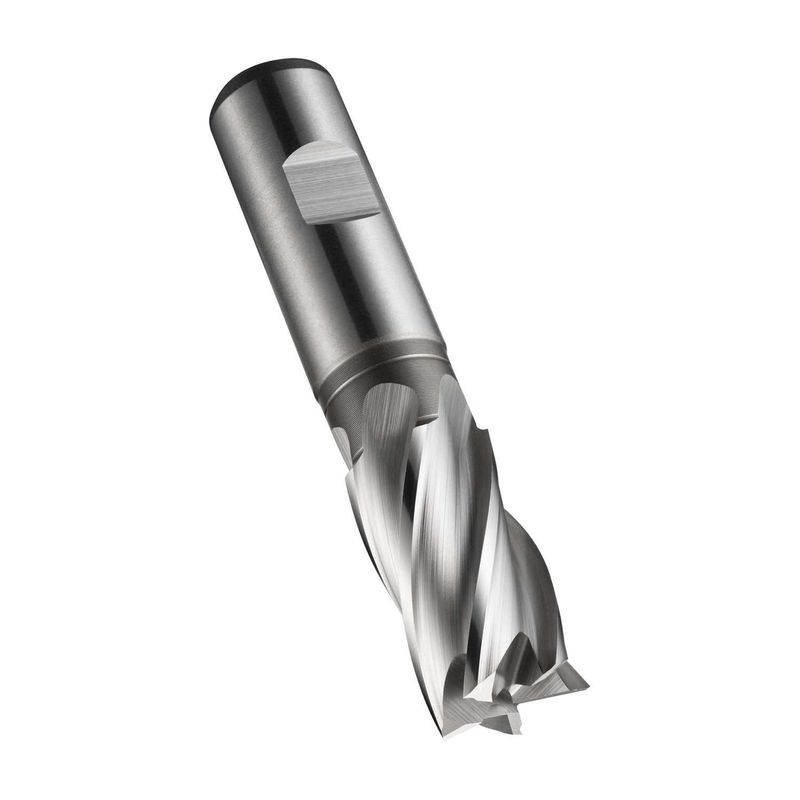 · Feita em aço rápido cobalto sinterizado HSS-E com acabamento brilhante, hélice 30° e ângulo de saída 12° para fresamento a 90°, fresamento de rasgos e fresamento em rampa em usinagem de aço carbono, cobre ou ligas de cobre